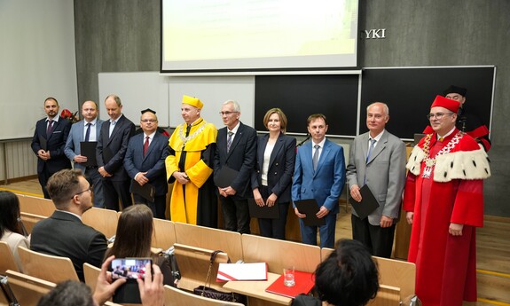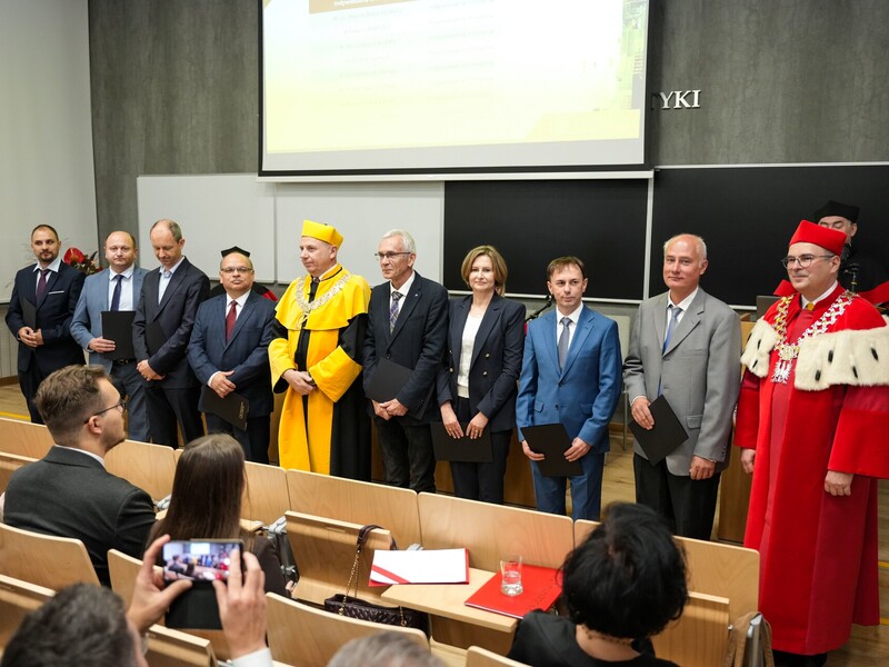 W uroczystości wzięli udział również dr hab. inż. Andrzej Szromba, prof. PK – Prodziekan do spraw nauki, Wydziału Inżynierii Elektrycznej i Komputerowej Politechniki Krakowskiej oraz dr hab. inż. Tomasz Perzyński, prof. URad – Dziekan Wydziału Transportu, Elektrotechniki i Informatyki Uniwersytetu Radomskiego