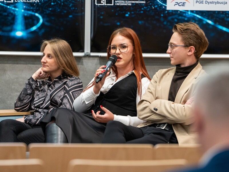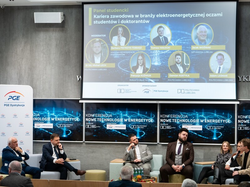 Podczas wydarzenia miał miejsce także panel studencki, w trakcie którego przedstawiciele młodego pokolenia dyskutowali na temat wyzwań stojących przed studentami wkraczającymi na rynek pracy. Swoim doświadczeniem podzieliły się m.in. Barbara PIETRZYK-TOBIASZ, pełniąca funkcję Rzecznika Praw Doktoranta w Krajowej Reprezentacji Doktorantów oraz Patrycja KUŹMIUK, Członkini Prezydium Forum Uczelni Technicznych. Głos zabrali także przedstawiciele Politechniki Lubelskiej: Damian KOSTYŁA – Przewodniczący Rady Uczelnianej Samorządu Doktorantów, a także Adam LEŚNIAK – Przewodniczący Rady Uczelnianej Samorządu Studenckiego. Oczekiwania firmy PGE Dystrybucja S.A jako pracodawcy przedstawił Pan Tomasz MAŁECKI – Wiceprezes Zarządu. Natomiast Pan Jacek WOŹNIAK, Prezes Zarządu SEP Oddział Lubelski, podkreślił istotę zaangażowania młodych ludzi w dodatkowe aktywności, dzięki którym mogą nabywać nowe umiejętności.